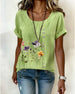 SPECIFICATIONS Top Type: T-shirt Style: Casual Material: Cotton Blends Occasion: Daily Neckline: Round Neck Pattern Type: Floral Sleeve Type: Regular sleeve Sleeve Length: Short Sleeve Fit Type: Regular Season: Spring,Summer Package Includes: 1 x T-shirt SIZE TABLE Size Bust Length CM INCH CM INCH S 97 38.19 65 25.59 M 101 39....