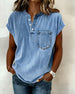 Washed Denim Henley Short Sleeve Top