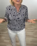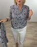 Geometric Semi-Open Collar Three-Quarter Sleeve Shirt