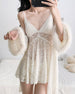 Large Size Deep V Mesh Patchwork Sleep Dress