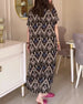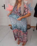 SPECIFICATIONS Style: Casual Material: Cotton Blends Dress Type: A-Line Dress Length: Maxi Neckline: Round Neck Pattern Type: Print Sleeve Length: 3/4 Sleeve Fit Type: Regular Season: Spring,Summer Occasion: Daily Package Includes: 1 x Dress SIZE TABLE Size Bust Length CM INCH CM INCH S 97 38.19 130 51.18 M 101 39.76 133 52.36 L 1...