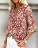 Floral Print V-Neck Three-Quarter Sleeve Blouse
