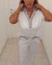 Cotton Linen Button Detail Short Sleeve T-Shirt