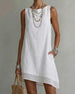 SPECIFICATIONS Style: Casual Material: Cotton Blends Dress Type: Shift dress Dress Length: Midi Neckline: V neck_V Pattern Type: Solid Color Sleeve Length: Sleeveless Details: Pocket,Ruffle Fit Type: Regular Season: Spring,Summer Occasion: Daily Package Includes: 1 x Dress SIZE TABLE Size Bust Length CM INCH CM INCH S 92 36.22 120...