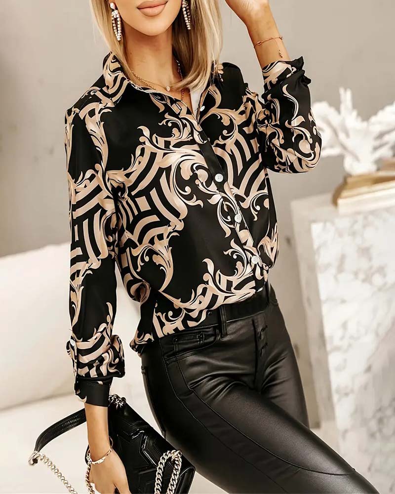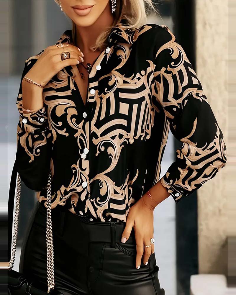 NEW Icon1 Casual Printed Lapel Long Sleeve Shirt