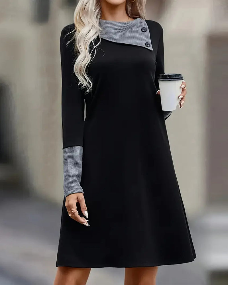 Long Sleeve Contrast Color Elegant Dress