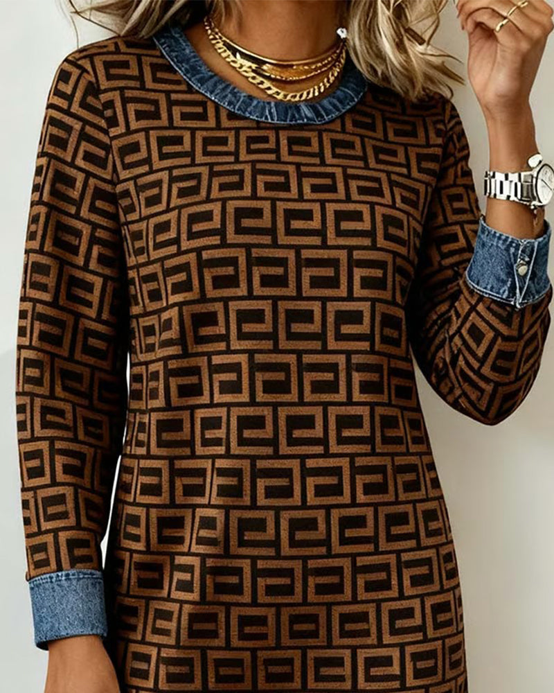 NEW Icon1 Fashionable Monogram Print Patchwork Dress