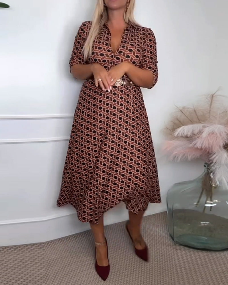 Lapel Print Fashion Dress