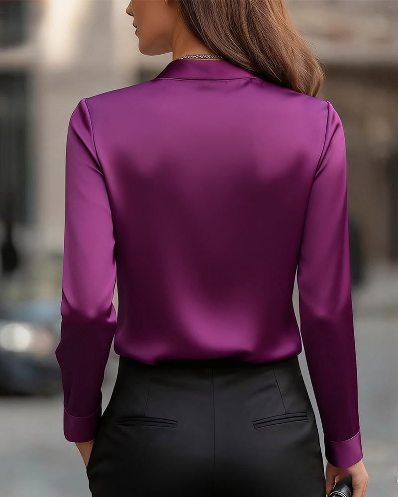 NEW Icon1 Ribbon Collar Satin Long Sleeve Blouse