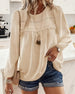 SPECIFICATIONS Top Type: Blouses Style: Casual Material: Cotton Blends,Lace Occasion: Daily Neckline: Round Neck Pattern Type: Solid Color Sleeve Type: Regular sleeve Sleeve Length: Long Sleeve Fit Type: Regular Season: Fall,Winter Details: Lace Package Includes: 1 x Blouse SIZE TABLE Size Bust Length CM INCH CM INCH S 92 36.22 65 25....