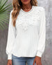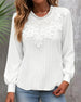 SPECIFICATIONS Top Type: Tops Style: Casual Material: Cotton Blends Occasion: Daily Neckline: Round Neck Pattern Type: Solid Color Sleeve Type: Lantern Sleeve Sleeve Length: Long Sleeve Fit Type: Regular Season: Fall,Winter Details: Lace Package Includes: 1 x Top SIZE TABLE Size Bust Length CM INCH CM INCH S 92 36.22 65 25.59 M 96 3...