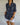 Ruffled Zipper Long-Sleeved Printed Blouse