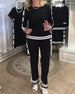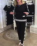 Color-Blocked Casual Straight-Leg Pants Two-Piece Set