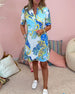 Elegant Three-Quarter Sleeve Printed Waist Dress