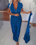 FEATURES Elegant V-neck design: The elegant V-neck design perfectly highlights the charming neck line, adding a touch of elegance and charm to the overall look. Exquisite prints: The unique and exquisite prints are like works of art embellishing the skirt, making you the focus wherever you go, showing your fashion taste. Chic knot details: T...