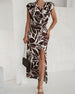 SPECIFICATIONS Style: Casual Dress Type: A-Line Dress Length: Maxi Neckline: V neck_V Pattern Type: Print Material: 5%Spandex, 95%Polyester Sleeve Type: Ruffle Sleeve Sleeve Length: Short Sleeve Details: Slit Fit Type: Regular Season: Spring, Summer, Fall Occasion: Daily Package Includes: 1 x Dress SIZE TABLE Size Bust Le...