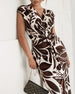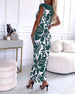 Leaf print slit pleated sleeveless slim fit dress