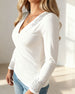 SPECIFICATIONS Top Type: Tops Style: Chic, Sexy Material: 35% Spandex, 65% Polyester Occasion: Daily Neckline: V neck_V Pattern Type: Solid Color Sleeve Type: Regular sleeve Sleeve Length: Long Sleeve Fit Type: Regular Season: Spring, Fall Details: Patchwork, Buttons, Hollow Out Package Includes: 1 x Tops SIZE TABLE Size ...