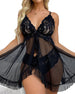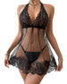 Floral Lace Halter Babydoll Lingerie Dress With Thong