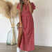 Vintage printed V-neck long-sleeve elegant dress