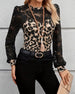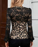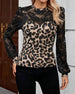 Elegant Leopard Print Lace Long-Sleeve T-Shirt