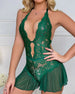 Halter Lace Mesh See-through Sexy High Slit Nightgown