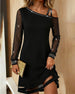 SPECIFICATIONS Style: Elegant Material: Cotton Blends Dress Type: A-Line Dress Length: Knee Length Neckline: Cold Shoulder Pattern Type: Solid Color Sleeve Type: Regular sleeve Sleeve Length: Long Sleeve Details: Patchwork,Hot Drilling Fit Type: Regular Season: Fall,Winter Occasion: Daily,Party Package Includes: 1 x Dress SIZE TABLE S...