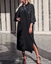 SPECIFICATIONS Style: Casual Material: Cotton Blends Dress Type: Shift dress Dress Length: Midi Neckline: Stand Collar Sleeve Type: Bat sleeve Sleeve Length: 3/4 Sleeve Details: Slit,Zipper Fit Type: Regular Season: Spring,Fall,Winter Occasion: Daily Package Includes: 1 x Dress SIZE TABLE Size Bust Length CM INCH CM INCH S 97 37....