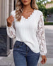 Casual Lace V-Neck Long-Sleeved T-Shirt