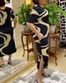 SPECIFICATIONS Style: Casual Category: Sets Material: 95% Polyester, 5% Spandex Pattern Type: Print Neckline: One Shoulder Sleeve Type: Regular sleeve Sleeve Length: 3/4 Sleeve Pants Type: Conventional Pants Length: Long Waist Type: Mid Waist Fit Type: Regular Season: Spring,Summer,Fall Details: Patchwork Occasion: Daily Package Includes: 1 x...