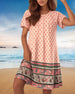 SPECIFICATIONS Style: Casual Material: Cotton Blends Dress Type: Shift dress Dress Length: Knee Length Neckline: Round Neck Pattern Type: Print Sleeve Type: Regular sleeve Sleeve Length: Short Sleeve Details: Shirred Fit Type: Regular Season: Spring,Summer Occasion: Daily Package Includes: 1 x Dress SIZE TABLE Size Bust Length CM I...