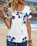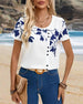 SPECIFICATIONS Top Type: T-shirt Style: Casual Material: Cotton Blends Occasion: Daily Neckline: Round Neck Pattern Type: Print Sleeve Type: Regular sleeve Sleeve Length: Short Sleeve Fit Type: Regular Season: Spring,Summer Details: Buttons Package Includes: 1 x T-shirt SIZE TABLE Size Bust Length CM INCH CM INCH S 97 38.19 68 26...