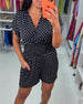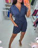 Casual polka dot printed V-neck short-sleeve jumpsuit