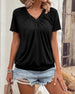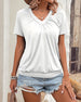 SPECIFICATIONS Top Type: T-shirt Style: Casual Material: Cotton Blends Occasion: Daily Neckline: V neck_V Pattern Type: Solid Color Sleeve Type: Regular sleeve Sleeve Length: Short Sleeve Fit Type: Regular Season: Spring,Summer Details: Shirred Package Includes: 1 x T-shirt SIZE TABLE Size Bust Length CM INCH CM INCH S 108 42.52 ...