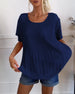 FEATURES Elegant Pleats: Featuring delicate pleats, this top adds a touch of sophistication to any look. Pure Comfort: Enjoy ultimate comfort with this lightweight, breathable, short-sleeve top. Multiple Colors: Available in a variety of solid colors to suit your personal style. Versatile Wear: Perfect for both casual and formal occasions....