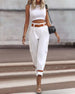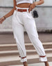 SPECIFICATIONS Style: Casual Material: 100% Cotton Pattern Type: Solid Color Pants Type: Conventional Pants Length: Nine Points Waist Type: Mid Waist Fit Type: Regular Season: Spring,Summer,Fall Details: Pocket,Shirred Occasion: Daily Package Includes: 1 x Pants SIZE TABLE Size UK Waist Length Hip CM INCH CM INCH CM INC...