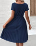 SPECIFICATIONS Style: Elegant,Business Material: Cotton Blends Dress Type: A-Line Dress Length: Knee Length Neckline: Round Neck Pattern Type: Solid Color Sleeve Type: Regular sleeve Sleeve Length: Short Sleeve Details: Shirred Fit Type: Regular Season: Summer Occasion: Daily,Work Package Includes: 1 x Dress SIZE TABLE Size Bust ...