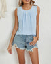SPECIFICATIONS Top Type: Tank Top Style: Casual Material: Cotton Blends Occasion: Daily Neckline: Round Neck Pattern Type: Solid Color Sleeve Length: Sleeveless Fit Type: Regular Season: Spring,Summer Details: Shirred Package Includes: 1 x Tank Top SIZE TABLE Size Bust Length CM INCH CM INCH S 100 39.37 68 26.77 M 105 41.34 69 27....