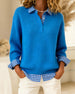 Solid Color Pullovers with V-Neck and Long-Sleeved