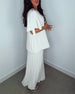 SPECIFICATIONS Style: Casual Top Type: Blouses Category: Sets Material: Cotton Blends Pattern Type: Solid Color Neckline: Round Neck Sleeve Type: butterfly sleeve Sleeve Length: Half Sleeve Pants Type: Conventional Pants Length: Long Waist Type: Mid Waist Fit Type: Loose Season: Summer Details: Shirred Occasion: Daily Package Includes: 1 x Blo...