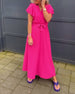 Solid Color Ruffle Sleeve Tie Long Dress