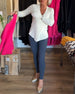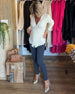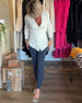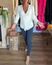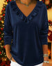 Solid Color Ruffled V-Neck Blouse