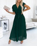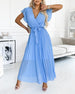 SPECIFICATIONS Style: Elegant Material: 100% Polyester Dress Type: A-Line Dress Length: Midi Neckline: V neck_V Pattern Type: Solid Color Sleeve Type: Ruffle Sleeve Sleeve Length: Short Sleeve Details: Lace Up, Shirred Fit Type: Regular Season: Summer Occasion: Daily Package Includes: 1 x Dress SIZE TABLE Size Bust Length Sleeve...