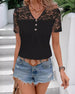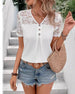 SPECIFICATIONS Top Type: Blouses Style: Casual Material: Spandex,Polyester Occasion: Daily Neckline: V neck_V Pattern Type: Solid Color Sleeve Type: Regular sleeve Sleeve Length: Short Sleeve Fit Type: Regular Season: Spring,Summer Details: Patchwork,Buttons,Lace Package Includes: 1 x Blouse SIZE TABLE Size Bust Length CM INCH CM INCH...
