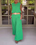 Solid color sleeveless hollow tank top wide leg pants set