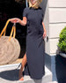 SPECIFICATIONS Style: Casual Material: 100% Polyester Dress Type: Shift dress Dress Length: Maxi Neckline: Round Neck Pattern Type: Solid Color Sleeve Type: Regular sleeve Sleeve Length: Short Sleeve Details: Slit Fit Type: Regular Season: Summer Occasion: Daily Package Includes: 1 x Dress SIZE TABLE Size Bust Length Sleeve...