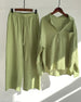 Solid color shirt pants two piece set