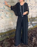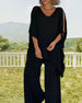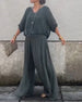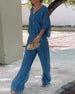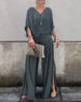 SPECIFICATIONS Top Type: Tops Style: Casual Material: Cotton Blends Occasion: Daily Neckline: V neck_V Pattern Type: Solid Color Sleeve Type: Slit Sleeves Sleeve Length: Half Sleeve Pants Length: Long Fit Type: Loose Season: Summer Details: Pocket, Lace Up Package Includes: 1 x Top, 1 x Pants SIZE TABLE (cm) Size Bust Top le...