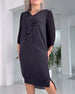 SPECIFICATIONS Style: Casual Material: Cotton Blends Dress Type: Shift dress Dress Length: Knee Length Neckline: V neck_V Pattern Type: Solid Color Sleeve Type: Regular sleeve Sleeve Length: 3/4 Sleeve Details: Slit Fit Type: Regular Season: Fall,Winter Occasion: Daily Package Includes: 1 x Dress SIZE TABLE Size Bust Length CM ...