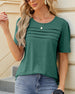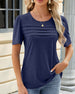 SPECIFICATIONS Top Type: T-shirt Style: Casual Material: Cotton Blends Occasion: Daily Neckline: U Neck_U Pattern Type: Solid Color Sleeve Type: Regular sleeve Sleeve Length: Short Sleeve Fit Type: Regular Season: Spring, Summer, Fall Details: Shirred Package Includes: 1 x T-shirt SIZE TABLE Size Bust Length Sleeve Shoulder CM INCH CM...